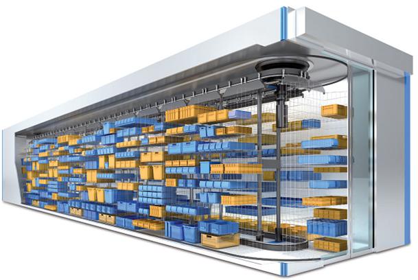 智能水平回轉庫是以料斗為存儲單元,是在水平面上以順時針或逆時針的旋轉,將需要的料斗旋轉送到出貨口。適用于廠房不高但面積很大的區域,減少取貨的人員走動,并提高準確率。回轉庫高度可以從2.2m~4.1m,長度可以從5.9m~50.2m。該設備采用PLC控制技術,具有智能化存取,權限設置等功能。