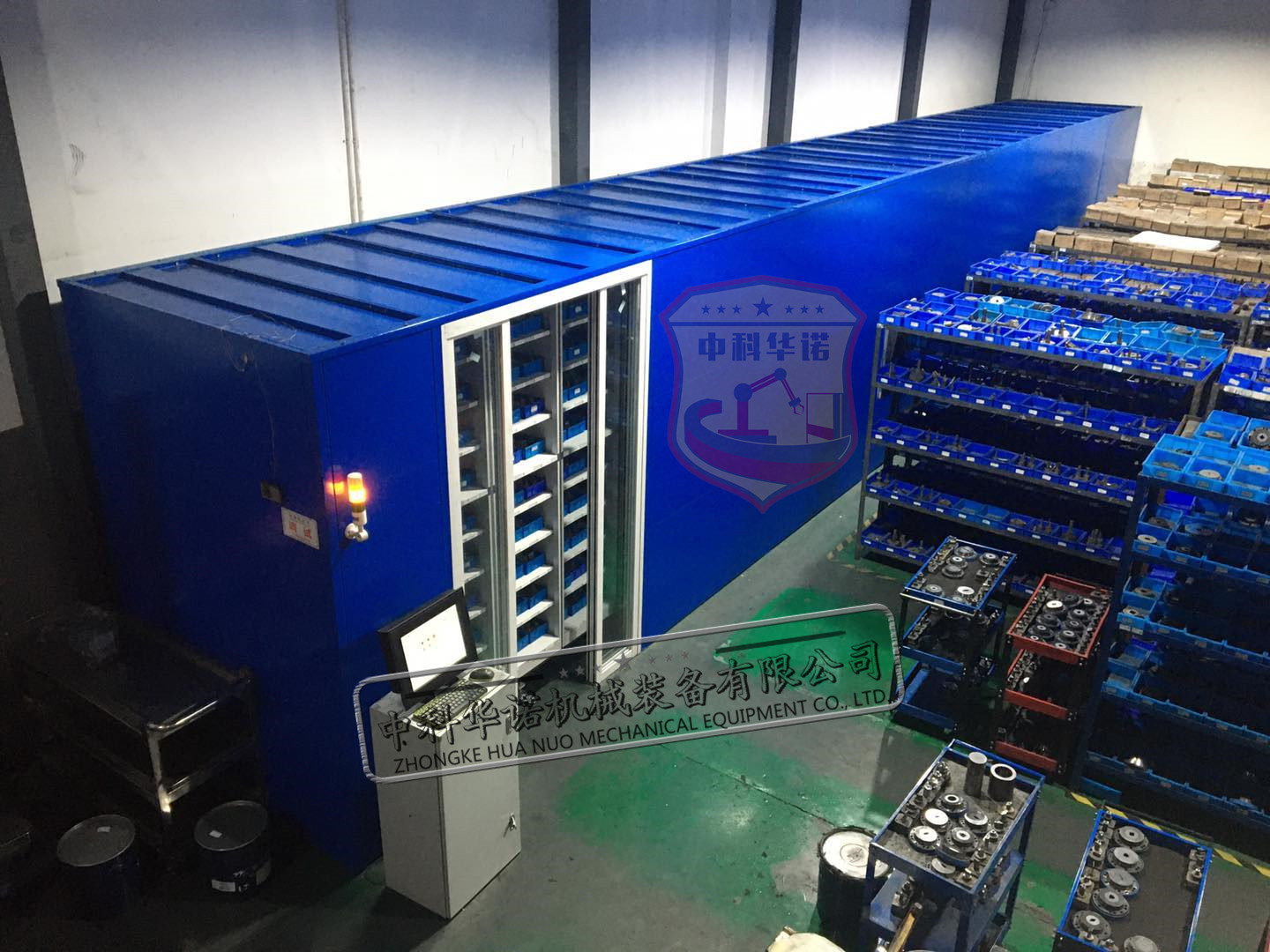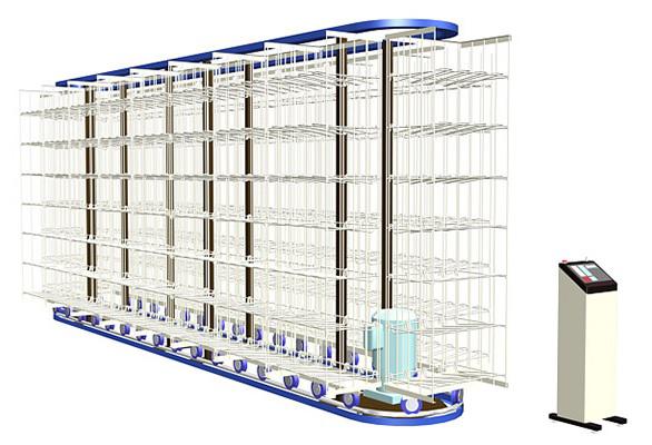 The intelligent horizontal gyration library is a hopper storage unit, which rotates the required hopper to the shipping port by rotating clockwise or counterclockwise on the horizontal plane. It is applicable to the areas with large but not large workshops, which can reduce the number of people taking the goods and improve the accuracy. The height of the gyration library can be from 2.2m~4.1m and length from 5.9m~50.2m. The device adopts PLC control technology, and has the functions of intelligent access, permission setting and so on.